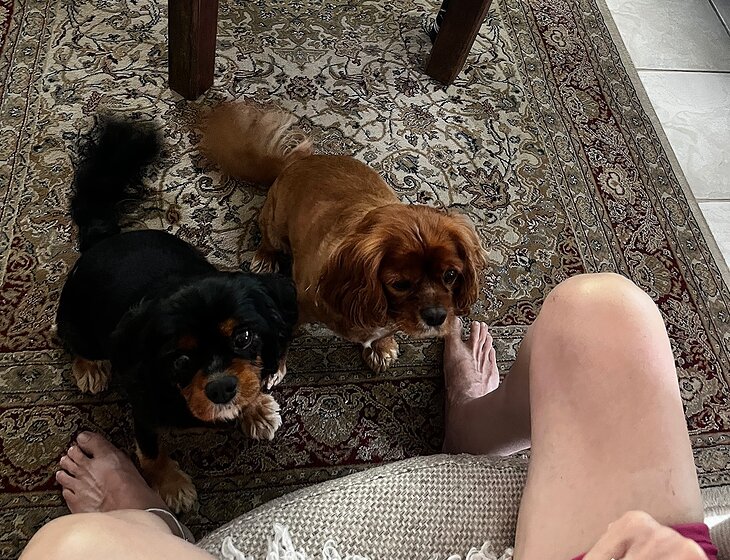 2 rescue King Charles cavaliers and some gardens that need watering.