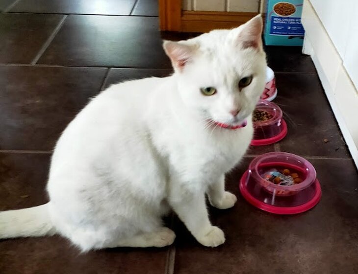 Miss Kitty is about 8 years old and requires half a tablet every 2nd day. She is otherwise in good health. Our 2 chickens need daily feeding and their water changed as well as changing the hay in their roost as needed.