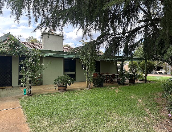 We are located on a farm only 5 min from Mathoura, 30 min from Echuca/Moama and close to Murray River. Our farm backs onto the Moria National Park. The house is a large 4brm older style. Heating and cooling throughout. Very peaceful and quiet. Have 2 dogs (a male kelpie and a female Jack Russel) who love a bush walk during the day. Easy living if you like peaceful time.