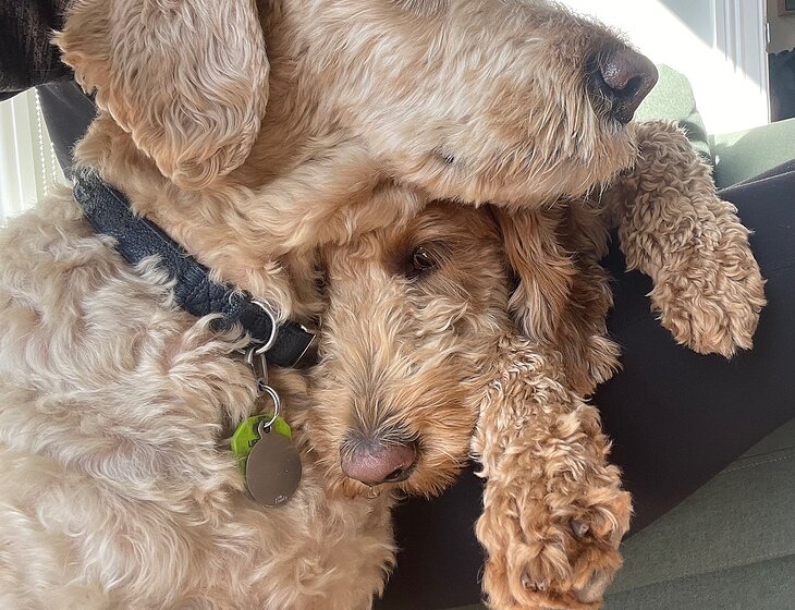 We have two dogs, Rosie and Hugo. Hugo does require daily medication (2-4 small tablets). They love a cuddle.