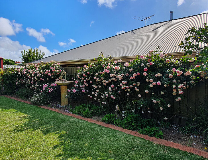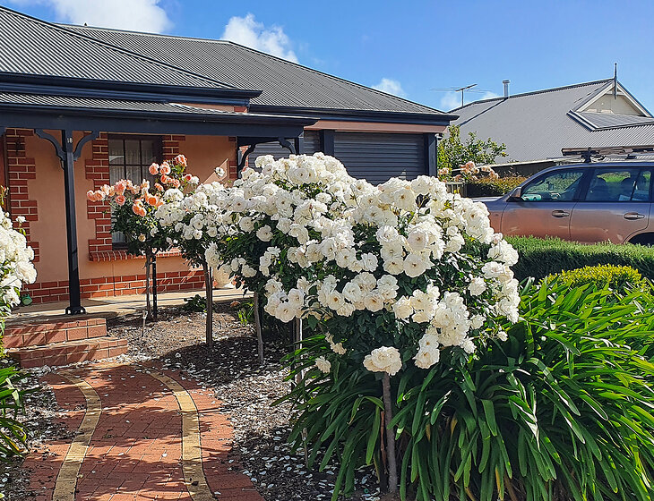 Low maintenance gardens with watering system. Some watering required for pot plants.