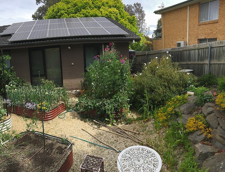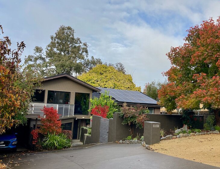 We have a three bedroom home with a front veggie garden, a largish back garden and plenty of pots on the back deck and in the house. The main bedroom has an ensuite (with under floor heating) and walk-in wardrobe. There's an extra bathroom, toilet upstairs and a laundry downstairs. The main living, dining and kitchen is open plan and modern, with plenty of natural light. There is a TV in the kitchen area, and smart TVs in the living area and office. There are sliding doors that open to a front and back deck area. There's air conditioning in the living area, main bedroom and office if it gets hot or too cold. It's in a nice quiet suburban neighbourhood with local shops not far away in Melba and Spence. There's a purpose built home office with good NBN network, a car port and front parking area. The house runs off the sun and the garden beds all have built in irrigation. So not much to look after!