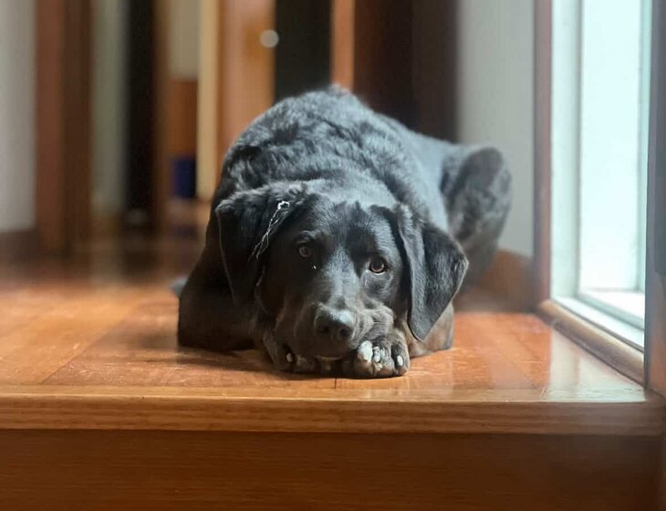 2 doggies to sit and fish to feed.