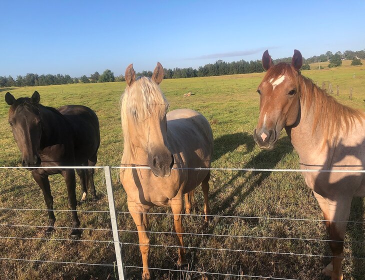 20 (low maintenance) horses, 1 very friendly dog. Nearest supermarket is about 15 minutes. 30 minutes to Hunter vineyards, 45 mins to Newcastle and beaches. Five bedroom house, very comfortable, good wifi, air conditioned, all modcons. Nice rural setting.