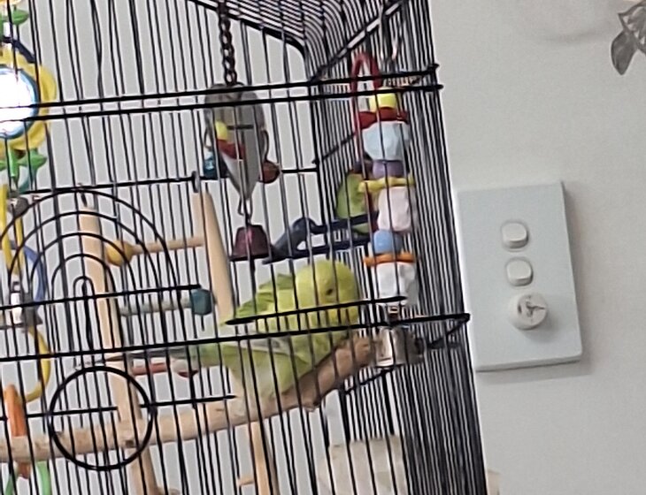 Happy my budgie is 15 and my absolute treasure. He needs to always have the screen door shut.