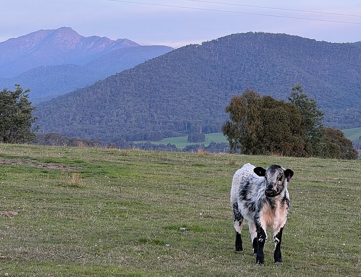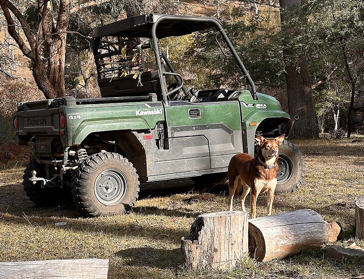We have a 5 bedroom home on an 860 acre farm, that is predominantly bush located on the Delatite river and Buttercup creek close to Lake Eildon and Mt Buller. Our dog is a kelpie born December 20 2020, she is a family dog rather than a working dog. We have 25 cows but our farm manager will be caring for them.
