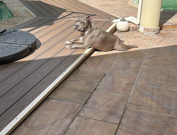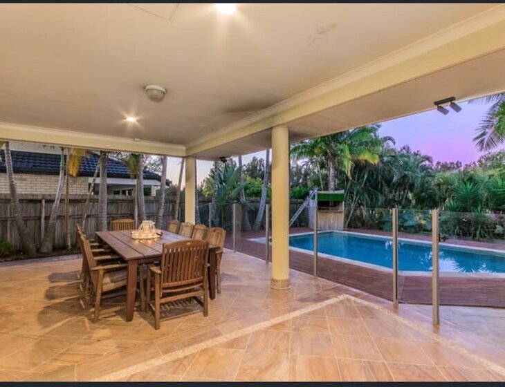 House in Merrimac looking after a 7 year old English Staffy. Very relaxed inside dog. Does like a short walk. House backs onto a large park area. Swimming pool & spa.