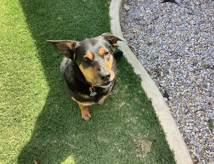 He is a kelpie hunterway who appreciates a walk each day and the occasional beach trip.