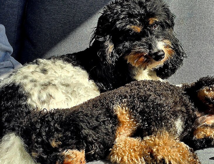 1 is 4 years old the other 3 years 4 months. They love cuddles and playing ball. Both Cavoodles, one is a toy the other mini.