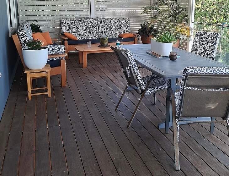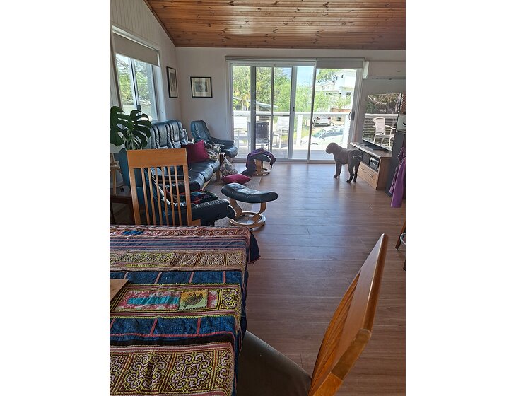 2 storey 5 bedroom house with large deck out the back and small verandah at the front. There is a living space downstairs and upstairs. We are a 6 minute walk to the beach.