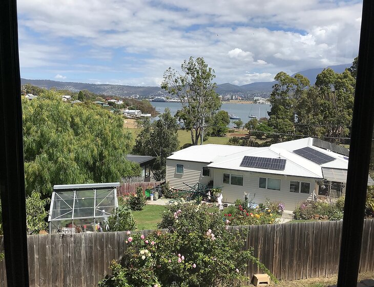 My home looks across the Derwent River to Hobart (5 minutes away) and has a perfect view of Kunanyi (Mt Wellington). I am five minutes from the local shopping centre with supermarkets etc. and there is a bus stop about 50m up the street. There are paths and trails to walk nearby and Rosny Hill to climb if so desired.