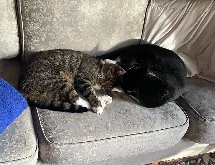 You will have two cats, Gus, a tabby cat and Niko who is black and white. They will both entertain you. They are indoor cats with a large cat enclosure. The kitty litter is in the enclosure so there is no smell in the house.