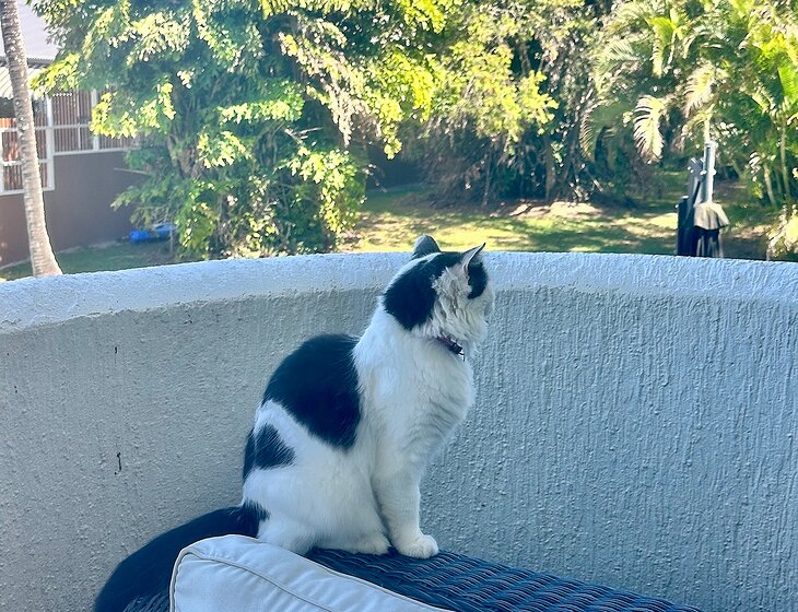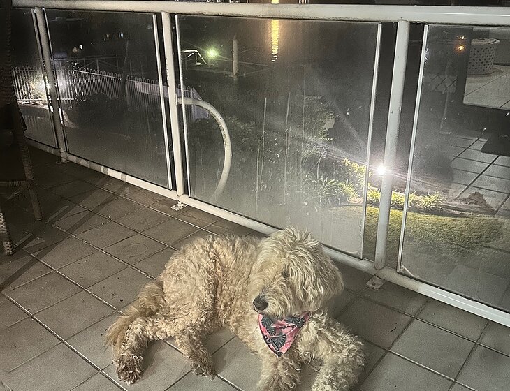 I have an 11yr old Groodle, Gidget and an 11yr old 1/2 Rag doll cat Moo. They are both very calm and cuddly. Gidget gets an early morning walk and a late afternoon/Early evening one as well. I would want to meet the right person(s) to look after my furries before I go if that is possible. It’s a great position lots of shops at your doorstep and the bus as well- you can fish off our jetty.