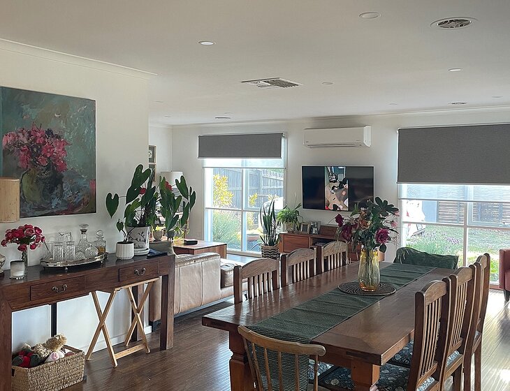 My home is 2 bedrooms, 2 bathrooms plus office/study and large games room ( with pool table ) out the back. Central ducted heating and a gas fire place. Car port with off street parking for an additional 3-4 cars.