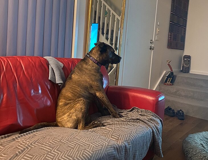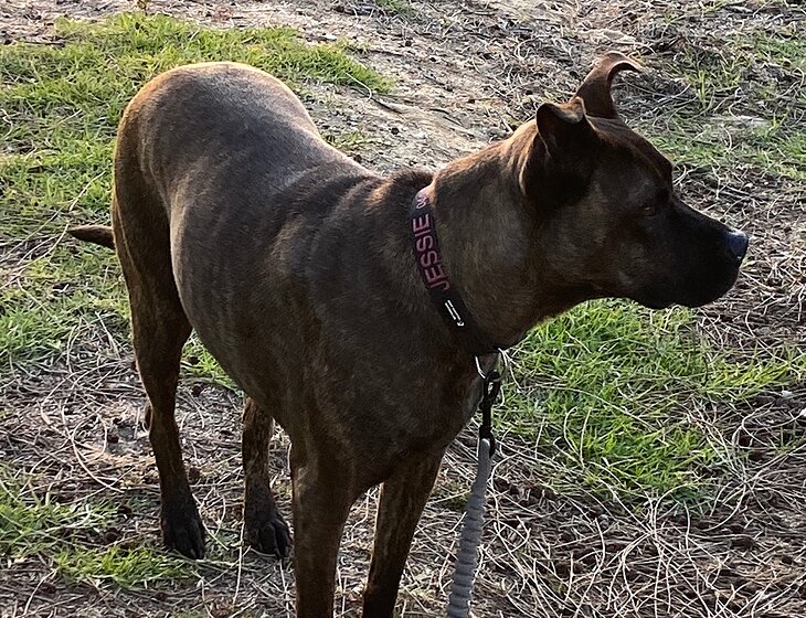 Jessie is a well trained 8 year old Staffie-cross dog. She loves a couple of walks a day including to the beach. She eats twice a day and lives in a bright and airy 4br house with a fenced back yard and likes to play in the garden and sleep in front of the TV at night. Other than caring for Jessie watering a few plants would be great if it’s dry but most of the garden and veggies have irrigation.
