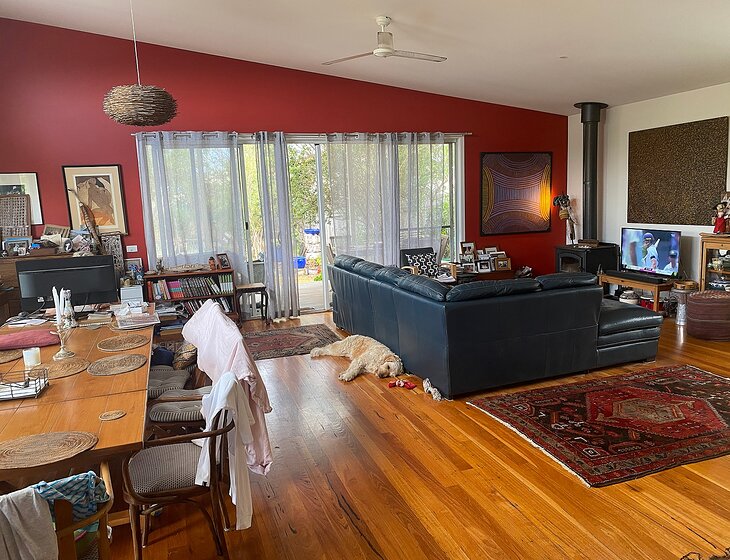 Newish modern house on flat land with all amenities. We have a lovely 18 month old Golden Retriever cross Poodle Tess, a female dog who needs a daily walk. We also have an old Whippet to care for called Bilbie. They are very quiet dogs who love to catch a ball or have a pat. We are close to beaches and the Moruya River! Also very close to the Hospital. We Have a lovely native garden and veggies. House is walking distance to town and river. Town swimming pool, great cafes like Alfresco, library and quaint pubs. We are a semi retired couple who travel often. Our house is open plan with wooden floors and has three bedrooms and high ceilings. There are fruit trees and native shrubs and big gum trees. Many birds visit the garden and the house is north facing and sunny. Quiet street and nice friendly neighbours. The kitchen has electric induction stove and there are solar panels on the slanted roof. We have tv with Netflix. Plenty of room to park several vehicles on the verge out the front of our house. It's a very quiet street. We are five minute drive to two supermarkets and nearby there is a farmers market every Tuesday and a big open market every Saturday . We are ten minutes drive to Shelly Beach and Moruya South beach. Read more...