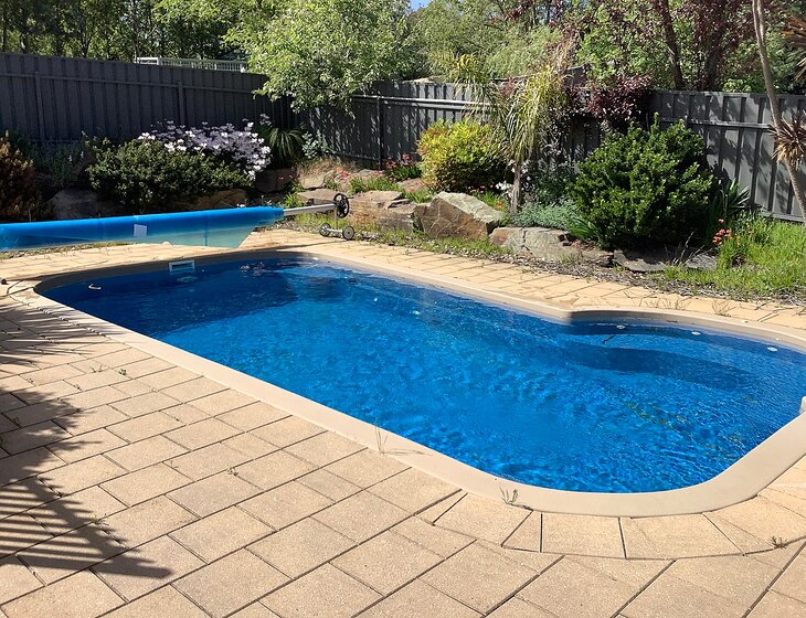 1 acre , very comfortable 4 bedroom home with a low maintenance garden , wood heater , reverse cycle heating/cooling , 2 bathrooms and easy to look after solar heated Swimming pool , located 5 minutes walk from the award winning laratinga wetlands , chickens x 6 ( with their own yard and with a solar activated chook house door ?)and 4yr old staffy x heeler Dexter , who needs a daily walk and lots of cuddles and a regular game of footy ? ( he is trained (level 4 dog obedience) ), 1 54 year old Sulphur Crested Cockatoo.,