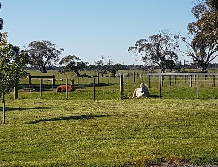 We have a small hobby farm of 22 acres complete with the usual menagerie of animals: horses, Lowline cows, 5 miniature harlequin sheep and a miniature goat. While the farm animals look after themselves mostly (and we have fabulous "real" famers next door to keep an eye on things) what we are looking for is a confident person or couple whom we can trust with our more domesticated family: April, Ludo and Alfie (Red Standard, black miniature and white toy poodles respectively); Evie and Zippy (Russian Blue cats); Errol (budgie) and the chickens (too many to name!) Evie, Zippy and Errol live in the farm cottage, not the main house, where you would be. The chickens are obviously in their run!