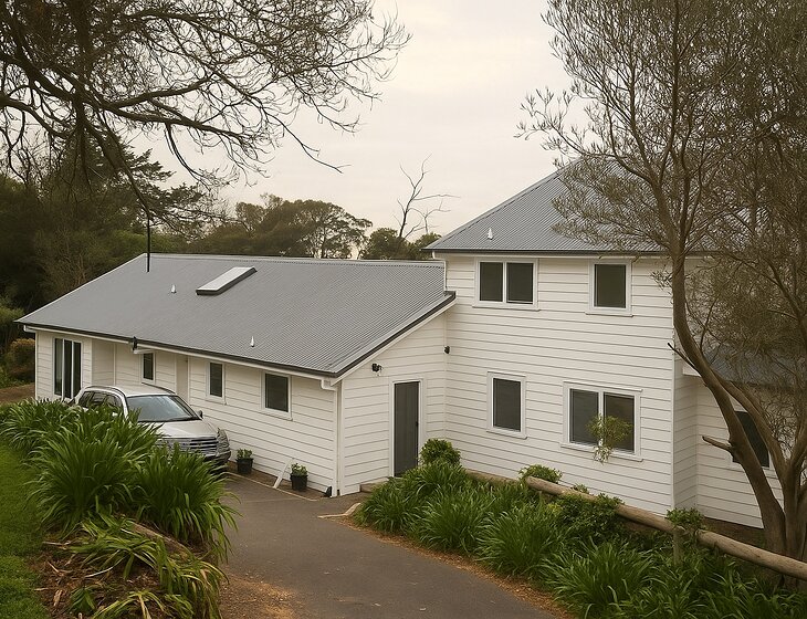 Our home is a spacious five-bedroom property on one and a half acres in Mount Eliza — a leafy, beachside suburb on the stunning Mornington Peninsula. It’s a peaceful place surrounded by nature, with a brand-new deck and outdoor spa that make for perfect evenings under the stars.