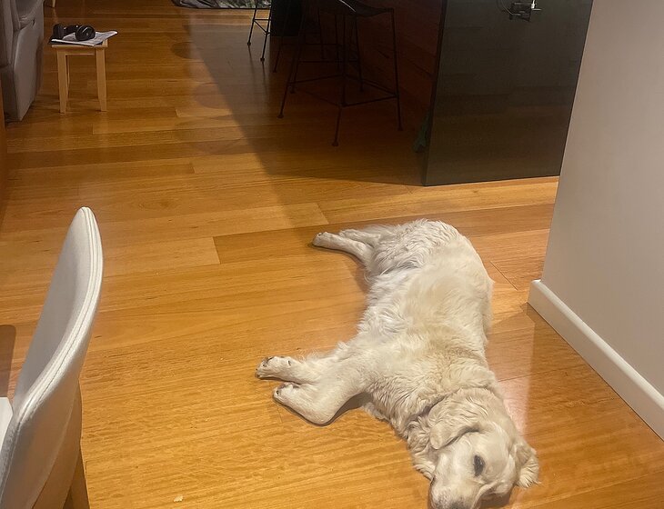 One beautiful 9 year old golden retriever, Billy. Billy has two walks a day, lives inside.