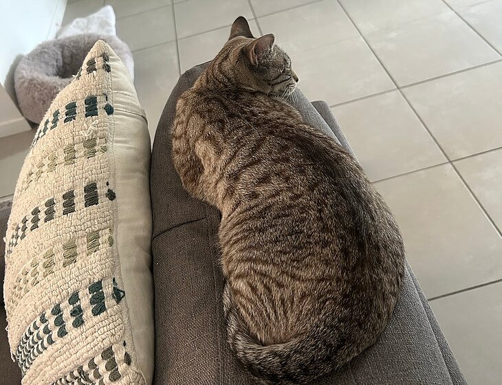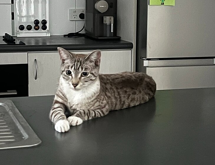 We live in a quiet little suburb in Townsville with our gorgeous kitten Stevie. We are a busy couple who use the Christmas period to travel and are looking for someone to keep our girl company. She's a very affectionate little cat who loves a cuddle on the couch whilst you're watching a movie. She loves sitting on the counter and watching you cook and goes wild over the kitchen tap when you turn it on. She requires no maintenance, just someone to feed her and love her. She's an inside cat and is usually asleep on the dinning room chair or couch when you're not around.