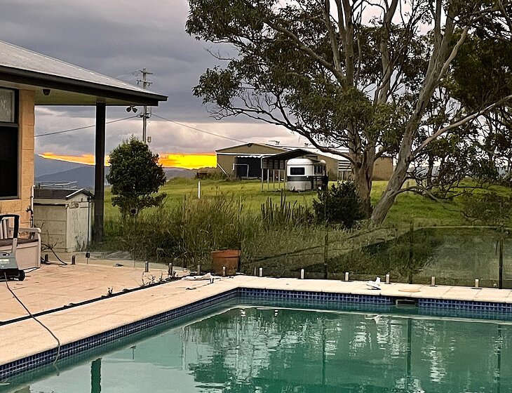 The house has a pool, wifi, reverse cycle air conditioning and a fireplace.