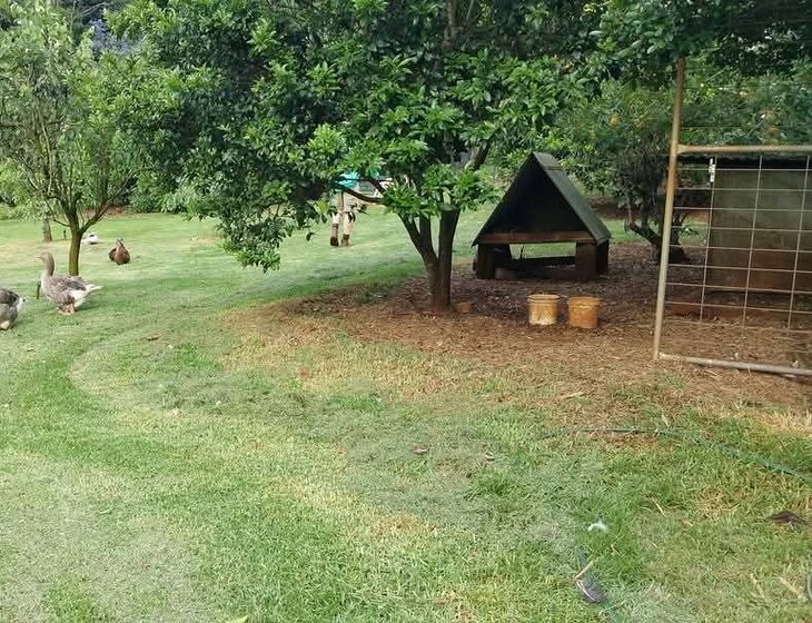 We are on 2 acres. Couple with own van or motorhome required. Good access for RV or Van. Large hard standing area. Power and water is provided and there is a toilet nearby. Use of main laundry if required. Quiet area close to golf course and national parks, hotel and cafes. Care of poultry is required . This involves letting them out of their night sheds and putting the away at night. Daily feeding and watering . Birds are all friendly and used to their night time routine as most are pretty old now. Egg collection.Some mowing and watering of vege garden may be required. More photos will be provided on request