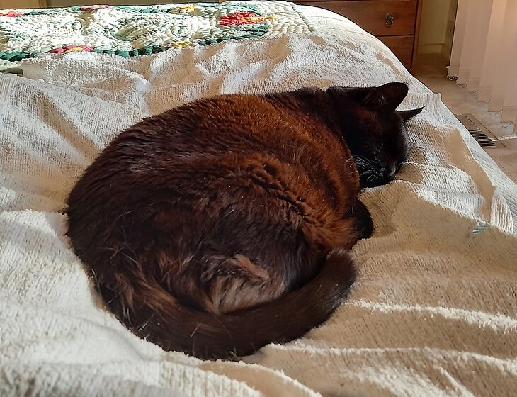 I fell in love with Nellie. She is the most wonderful cat. She let's you know when she wants something by tapping you on the leg. She's not fond of being picked up due to her arthritis, but loves a good pat and snuggle and occasionally takes up half the bed. It was hard to leave her.