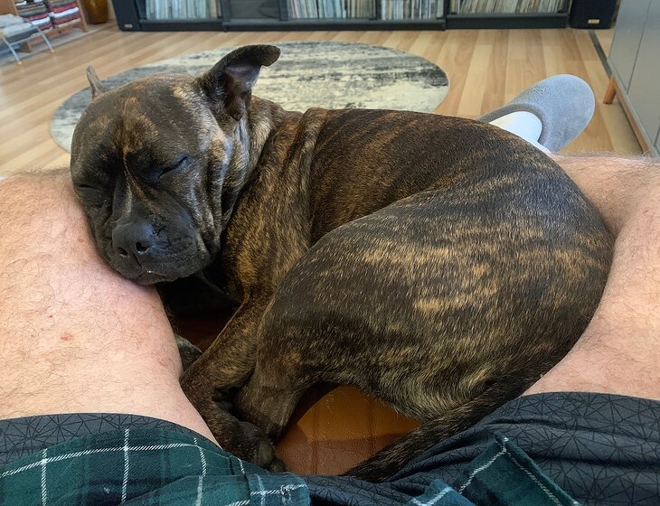 Lola, is a typical needy Staffie, she doesn’t like being left alone in the house, sleeps under the covers in our King Size bed and loves walkies, so if that doesn’t suit, read no further.