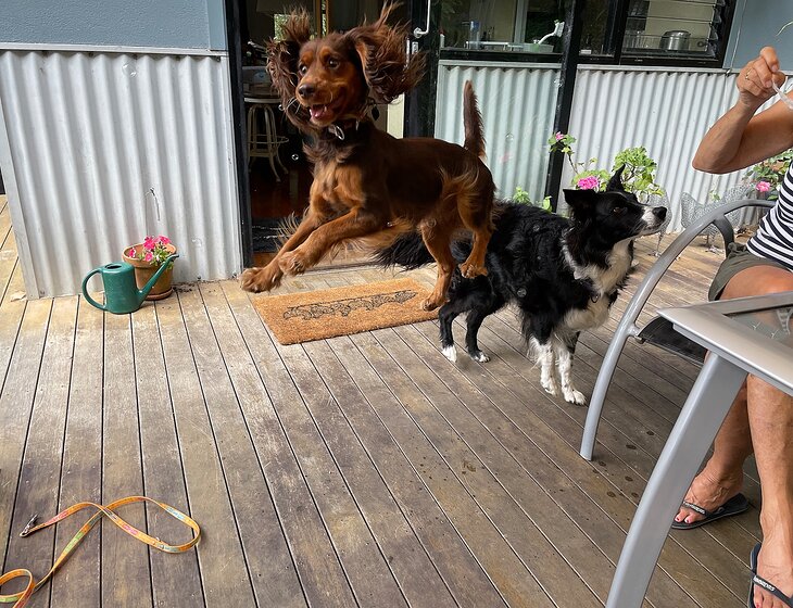 I have a 9 year old border collie with whom I do agility . She is very fit and active and requires daily walks and games. Also a 3 year old working cocker spaniel who is beyond cute and learning agility.