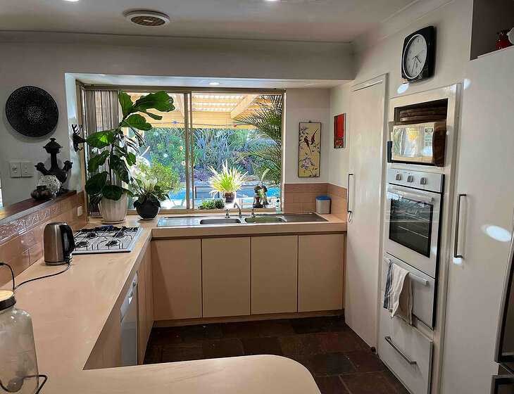 We have an older, but functional two story home, with balcony views of the ocean. Pool, a lovely undercover area to enjoy and fantastic gardens!
