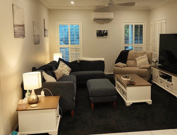 Our house is a spacious, well appointed, single level home for our little rainbow family of 3. The house has air conditioning and ceiling fans throughout, comfortable and spacious living areas, external security cameras and fully Crimsafe security-screened windows and doors. The house sits in a quiet neighborhood with a nature reserve and walking path opposite.