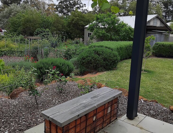 Gardeners rejoice! It is a paradise of flowers, fruit trees, natives etc and will require LOTS of watering during the warmer weather but it is such a peaceful setting to relax and enjoy.