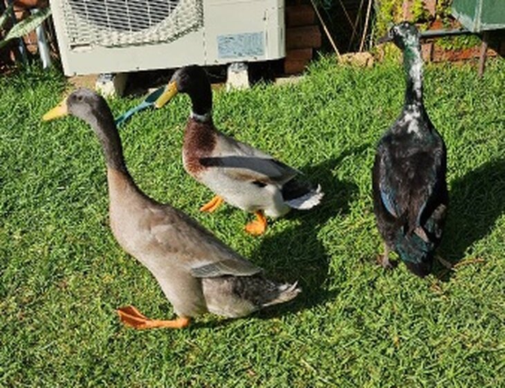 2. Three (3) ducks/drakes named Jose, Guru, and Max.