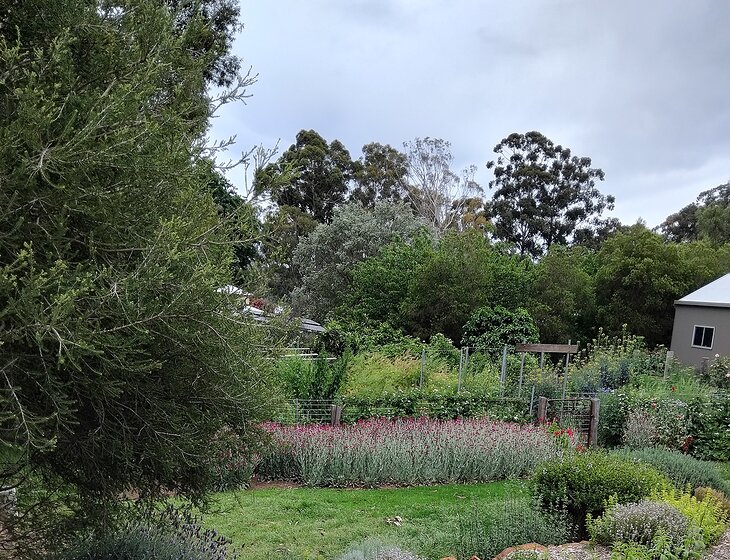 The property is a tranquil place of flowers, fruit trees, native plants and potted plants which will require LOTS of watering during the warmer weather but such a peaceful setting to relax and enjoy.