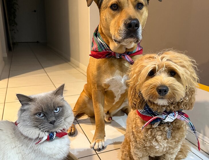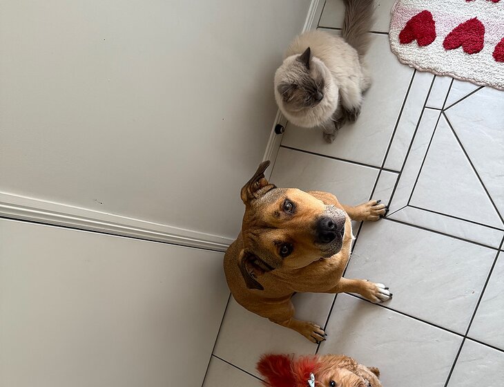 Alana and Kirby here, we are a young couple who own a duplexe. we have a spa and sauna out the back and plenty of driveway space for cars and caravans. We have three dogs Butterscotch(retired therapy dog), Mochi(therapy dog) and Gromit and two cats Freddie and Jellybean. Jellybean is super greedy and loves lots and lots of food. She can be a bit shy at first but once she knows you feed her she will love you.