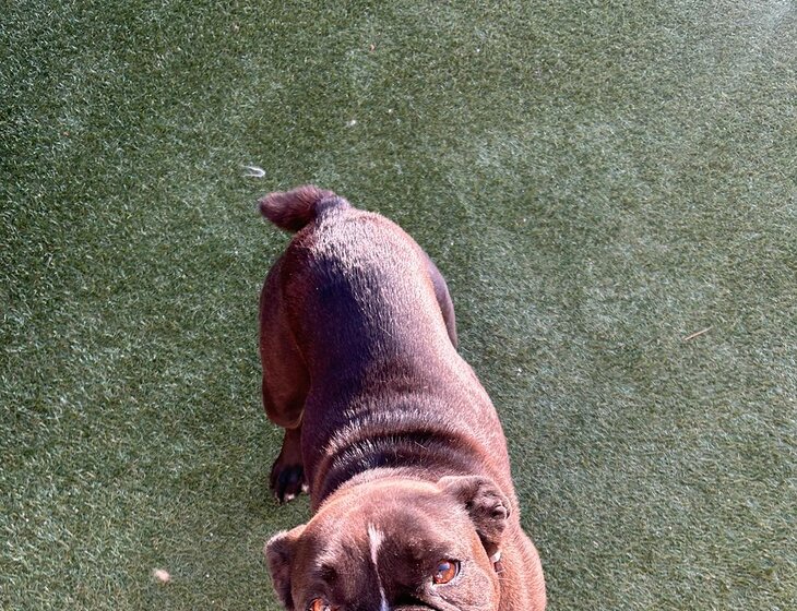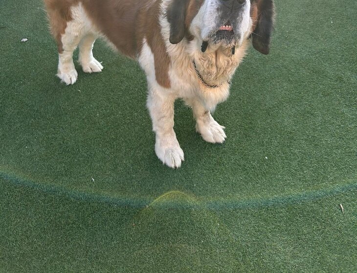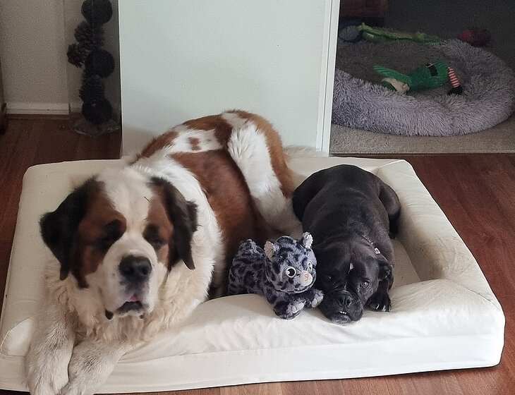 1 x bulldog x and 1 saint bernard. Both very friendly. No other pets