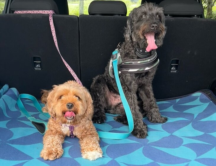 We have mini Labradoodle called Jessie who just loves company, and his friend a cavoodle called Teddy, who’s staying with us for a few weeks over Xmas.
