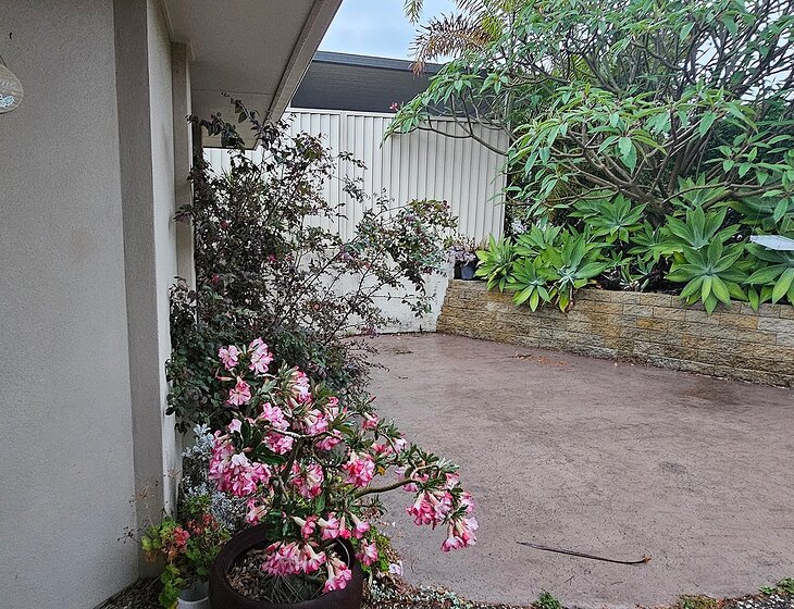 We live in Nerang ,Gold Coast ,Qld. We have a large 4br 2 bath home. All on 1 level. It's easy care. Beautiful garden with plants to water weekly.