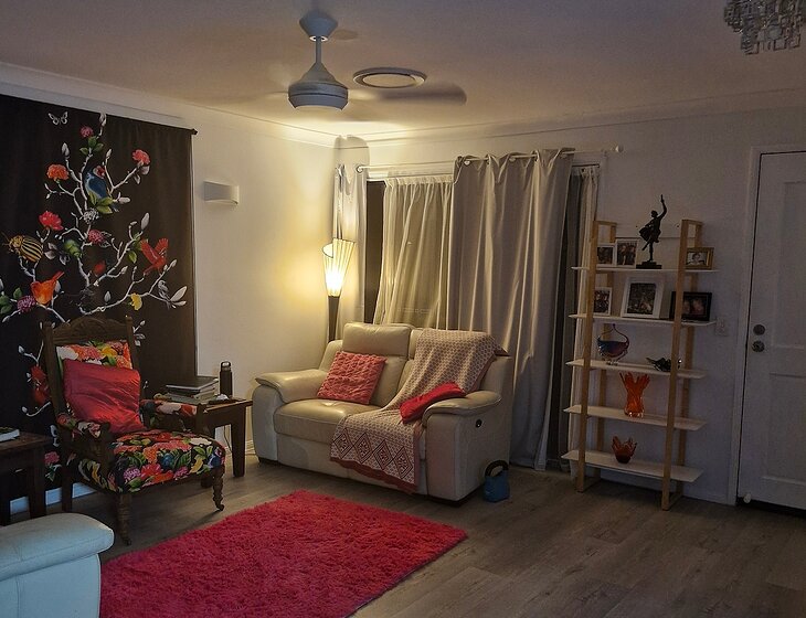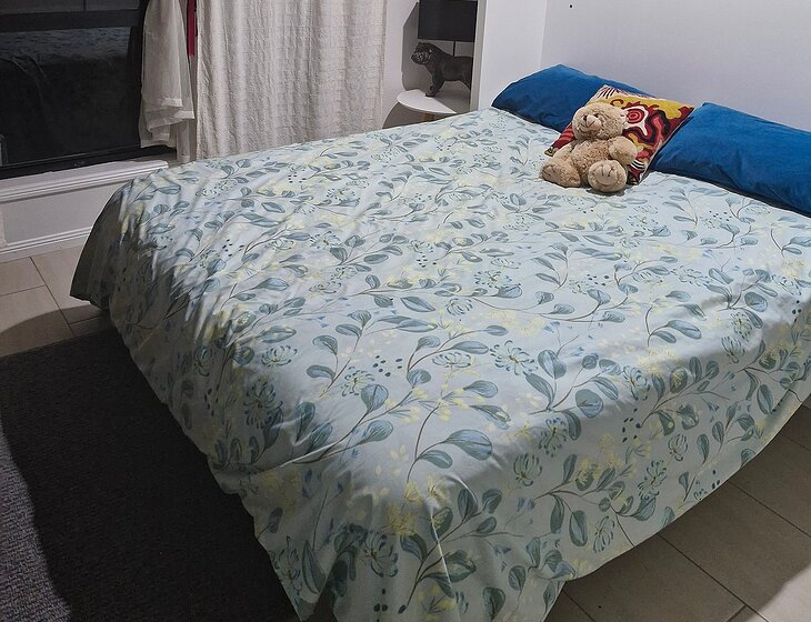 Hello, I live in a gated community on the Gold Coast. I have a 3 bed 2 bath home with all mod cons, including pool, gym, sauna, steam room. My home has no lawns & minimal gardens. Ducted A/C, BBQ, solar, 3 door fridge, induction cooktop, dishwasher, netflix & 2 tv's, 1 king bed, 1 queen bed, 1 king single.