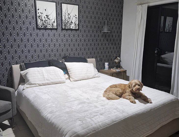 I have a miniature 14yo healthy labradoodle who needs a walk morning & afternoon. She uses a doggie door to access the garden. Bus stop & shopping centre is no more than 10 minutes walk from home, there's a Coles, Woolworth & Aldi supermarket. 2 minute drive to the shops. Car parking is in my driveway as my car will be in the garage.