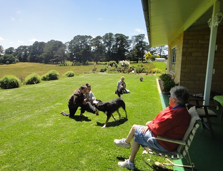 Our home is a 2BR cottage with 2 bathrooms on the family farm. We have 2 cats, wallabies in the orchard and chooks that need care if we are away.