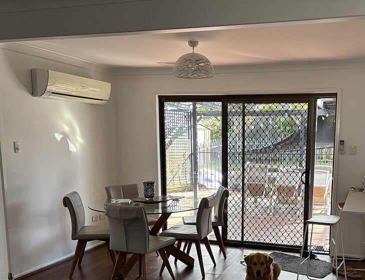 “Fabulous short sit loving and caring for big beautiful Teddy who was an absolute joy to hang with. I loved watching the joy he got from his swims. Didn’t see much of Layla but when I did she was super sweet and affectionate but just very independent. I learned quickly not to stress. Well equipped kitchen, comfy bed and loved the clean bathroom and kitchen towels being left on the bed for us. Thank you Claire for choosing us. ”