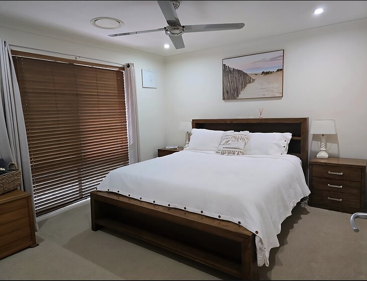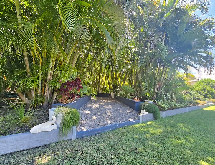 We live on 3/4 acre in a low set house only 15 mins to beach at Bribie Island with cafes, clubs and shopping centre, woolies and iga and the famous Sandstone Point Hotel.