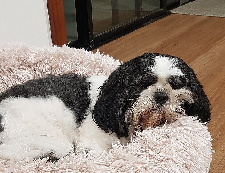 We have a 6-year-old Lhasa apso (similar to Shih tzu) named Leo. He is mostly easy-going, loves people and would need several walks a week (I walk him most days for 20 mins).