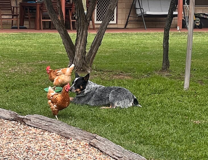 Feeding & water for 3 chickens, 2 dogs, 6 sheep & regular wild birds.