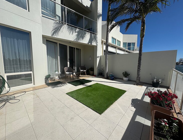 Our property has a boat mooring pontoon with patio overlooking the water in the marina with private waterfront