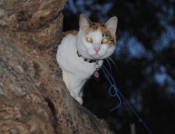 Miss Cleopatra, our totally spoiled cat, is usually quiet unless she’s hungry or looking for a cuddle. Since we live in a bush setting, she is always on a leash when outdoors.
