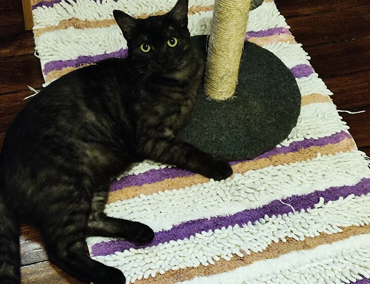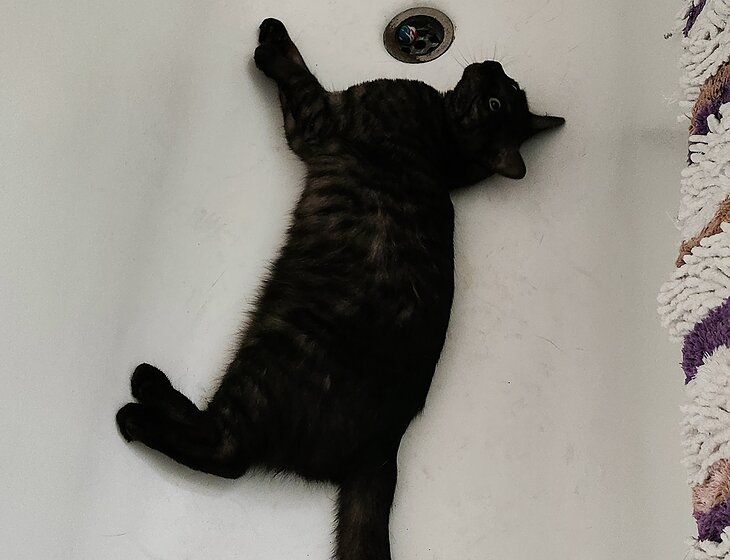 Vincent Cat is a beautiful smokey domestic who was rescued from a street in Stratfield in 2024. He loves attention and affection plus ball games in the bath. Vincent can get very upset when I am not home at night with him. He is independent but needs reassurance that someone is in the background to keep him safe. He sleeps in his own bed at night in the lounge or in my bedroom.