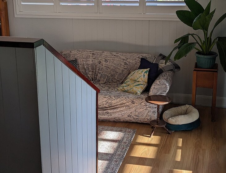 We have a lovely 3 bedroom railway cottage with a huge backyard in the town of Oakey. The living room is air-conditioned and so are two of the three bedrooms. Thankfully, we have solar so we encourage you to put the air cons on and keep you and our pups comfortable.